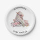 Plato De Papel Baby Shower Acuarela del Dragón Rosa