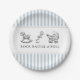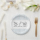 Placas creativas para bebés con encanto plateado, rayas azules y graciosa cita original sobre el fondo azul para la futura madre.