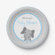 Platos modernos de papel para bebés con motivos de elefante gris y azul claro pastel. Perfecto para una pequeña ducha de bebé. ¡Fácilmente personalizable!