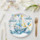 Este encantador diseño náutico capta la magia de una ducha de bebé. Navegar por el mundo de la celebración con estas encantadoras placas de papel para bebés, con una deliciosa velera azul y amarilla que flota sobre un fondo oceánico ondulado con una escena caprichosa de globos, una bandera y unas nubes azules onduladas. Listo para personalizar tu ducha de bebé como quieras.