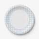 Añada un toque final a la decoración de la ducha de bebé con estos elegantes platos de papel de gingham azul.