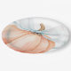 Este elegante y encantador plato de papel para bebés cuenta con un hermoso ilustracion acuático de una calabaza con una delicada cinta azul, perfecto para celebrar la llegada de un pequeño en la temporada de otoño.
