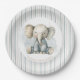 Plato De Papel Baby Shower con rayas azules de cacahuete pequeño
