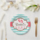 Plato De Papel Baby Shower Coral, Aqua y White Stripes