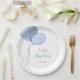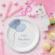Sencilla y moderna placa de papel para bebé de niño azul con un diseño minimalista de tres globos azules con algún patrón de punto. Genial para los niños fiestas de la ducha de bebé. Ilustrado y diseñado por Patricia Álvarez.