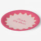 Plato De Papel Baby Shower de curva rosa de borde ondulado retro