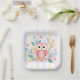 Plato De Papel Baby Shower de diseño floral de Lechuza Rosa Cuta