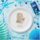 Plato De Papel Baby Shower de la jirafa de la pampas azul bebé