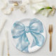 Un encantador diseño de plato de papel con un gran lazo azul acuarela en el centro. Este diseño simple, minimalista y elegante es perfecto para una fiesta de bebé para niño, un tema de fiesta de compromiso como "Ella está atando el nudo", o una celebración de "Algo azul antes de hacerlo", así como otros temas de fiesta lindos.
