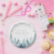 Plato De Papel Baby Shower de nieve de invierno plateado y morado