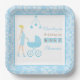 Plato De Papel Baby Shower de una mujer morena de damasco azul