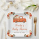 Rústico plato de ducha para bebés con un camión de calabaza, calabazas naranjas y beige y arreglos florales. Perfecto para una ducha de bebé en otoño. Las palabras se pueden cambiar para adaptarlas a sus propios detalles o requisitos