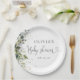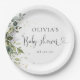 Placa de papel de Baby Shower Eucalyptus Floral Green. Este elegante y elegante Baby Shower Invitation presenta una hermosa acuarela pintada a mano Eucalyptus Floral Greenery. Buscar elementos coincidentes en la colección de vegetación floral Eucalyptus.