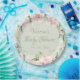 Guión elegante de color verde sabio personalizado sobre un elegante plato de papel de fondo verde pastel con un marco de acuarela floral rosa de flores rosadas y rubor y vegetación que rodea un guión elegante para crear un hermoso entorno de mesa. Escapada perfecta para el bebé o el chica.