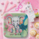 Un elefante de personalizado bebé con un diseño suave y redondeado y un estilo lúdico. Su cuerpo es un gris claro con grandes ojivas de disquete y un maletero corto y curvo. El elefante está adornado con extravagantes diseños florales de mosaico que se codean en todo el cuerpo, con colores vibrantes como rosa, amarillo y azul. Los parches tienen puntas visibles alrededor de los bordes, lo que le da un ambiente acogedor y hecho a mano. Sus ojos anchos y brillantes transmiten una sensación de inocencia y curiosidad, y sus mejillas rosadas le dan un toque de encanto adicional. El fondo es una acuarela Sage green, rosa y azul. Genial para chicas o niños.
