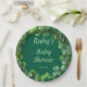 Atracciones verdes pintadas alrededor de un fondo verde. El texto es blanco con un contorno verde y una sombra verde más clara como un personalizable completo para una ducha de bebé para una madre.