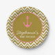 Plato De Papel Baby Shower náutico de Chevron dorado y rosa