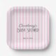 Placas de papel Baby Shower de rayas minimalistas rosadas y blancas modernas. Es muy fácil de personalizar, con sus datos personales.
