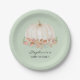 Este lindo plato de papel de ducha para bebés de otoño incluye una calabaza blanca acuarela y follaje sobre un suave fondo verde pastel. Perfecto para una ducha para bebés sin diferencias de género. Personalizable fácil. Acuarela original © Michele Davies.