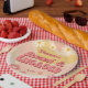 Deslumbrante y enganchado groovy retro daisy soltereta fin de semana fiesta de plancha de papel impreso personalizado, polvoriento retro rosa margarita groovy vibraciones soltero fin de semana fiesta decoración de mesa