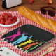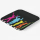 Algunos coloridos bailarines sentados sobre un fondo negro. Este diseño parece realmente efectivo en estas placas de papel