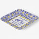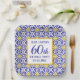 Baldosas portuguesas, azul, blanco y amarillo, rústico Azulejo, platos mediterráneos de papel de fiesta de cumpleaños número 60. Personalízalo con tus detalles.