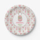 Bonitos platos de papel para una fiesta de cumpleaños de bailarina chica, con adorable conejo de bailarina en un columpio, con acentos florales. Este diseño es personalizable y personalizado - puede cambiar el nombre y otro texto en esta tarjeta. Tonos rosas y verdes.