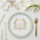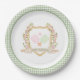 Ponga el escenario con estos hermosos platos de personalizado de cumpleaños. Este diseño tiene una acuarela de un escudo rodeado de ramas con remo de pickleball de gingham verde y rosa en el centro. Hay una frontera verde de gingham alrededor del borde. El texto dice "Feliz cumpleaños". Los colores utilizados son el verde musgo, el rosa rubor y el bronceado.