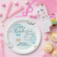 Balón de aire caliente Boys First Birthday Plates con globos de aire caliente de color azul y nubes flotantes. Wanderlust y UNmaravilloso mundo fiesta de primer cumpleaños para los chicos.