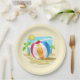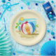 Platos de papel fiesta de verano con toallas de papel a juego.