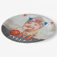 Baloncesto Bolas de Baloncesto Una Foto Primer Fiesta de Cumpleaños Plate. Cuidada servilleta de fiesta de cumpleaños para el fiesta de primer cumpleaños con una foto del personalizado. El diseño incluye baloncesto y banderas en tonos naranja, blanco y azul. Personalice la servilleta de esta fiesta de cumpleaños con la foto y el nombre de un niño.