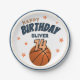 Baloncesto Ball Sports Happy Birthday Fiesta Paper Plates. Un moderno plato personalizado para celebrar el cumpleaños del deporte con un baloncesto, nombre y edad. Puede cambiar cualquier texto.