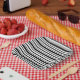 Gótico y albornoces con un diseño blanco y negro de rayas desiguales.