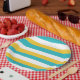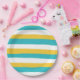 Plato De Papel Bandas desiguales - turquesa y amarilla