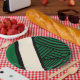 Plato De Papel Bandas triangulares: verde, crema y negro