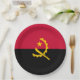 Este diseño presenta la bandera nacional de Angola (oficialmente conocida como la República de Angola), que es un país en la costa oeste de África del Sur. Angola tiene frontera con Namibia al sur, la República Democrática del Congo al norte, Zambia al este y el océano Atlántico al oeste; Angola también tiene una provincia de exclave, Cabinda, que limita con la República del Congo y la República Democrática del Congo. Angola es el segundo país más grande de habla portuguesa en términos de área y población (después de Brasil). La capital y ciudad más grande de Angola es Luanda. Otras grandes ciudades de Angola son Lubango (antes conocido como Sá da Bandeira), Huambo (antes conocido como Nova Lisboa), Benguela, Cabinda (también conocida como Chioua), Malanje, Saurimo (antes conocido como Henrique de Carvalho), Lobito, Cuíto (antes conocida como Silva Porto) y Uíge (antes conocida como Carmona).