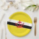Este diseño presenta la bandera nacional de Brunéi (oficialmente conocida como la Nación de Brunéi, la Aboda de la Paz), que es un país ubicado en la costa norte de la isla de Borneo en el Sudeste Asiático. Aparte de su costa con el mar de China Meridional, Brunei está completamente rodeado por el estado malasio de Sarawak; el país está separado en dos partes por el distrito de Sarawak, en Limbang. Brunei es el único estado soberano completamente en la isla de Borneo; el resto del territorio de la isla está dividido entre las naciones de Malasia e Indonesia. La capital de Brunei es Bandar Seri Begawan, que es también la ciudad más grande del país. Otras ciudades y pueblos importantes en Brunéi incluyen Kuala Belait, Seria, Tutong y Bangar.