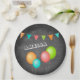 Cute Balloon Bunting Flag Chalkboard Kid Birthday Paper Plates. Cuidados platos de fiesta de cumpleaños para la celebración de la fiesta de cumpleaños del niño. Globos coloridos y banderas en pizarra gris. Personalice con el nombre de su hijo.