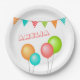 Bandera de Bunting de globo mate para niños Placas de papel de cumpleaños. Cuidados platos de fiesta de cumpleaños para la celebración de la fiesta de cumpleaños del niño. Globos coloridos y banderas de afinamiento. Personalice con el nombre de su hijo.