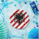 Bandera de Albania en formato de franjas y cabeza doble de águila negra con escudo de armas albanés