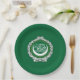 Este diseño presenta la bandera de la Liga Árabe (oficialmente conocida como la Liga de los Estados Árabes), que es una organización regional en el mundo árabe. Sus Estados miembros están situados en África septentrional, África occidental, África oriental y Asia occidental. Inicialmente, la Liga Árabe se formó en El Cairo el 22 de marzo de 1945 con seis miembros: Egipto, Iraq, Transjordania (cuyo nombre cambió a Jordania en 1949), Líbano, Arabia Saudita y Siria. El principal objetivo de la Liga Árabe es "estrechar las relaciones entre los Estados miembros y coordinar la colaboración entre ellos, salvaguardar su independencia y soberanía, y considerar de manera general los asuntos e intereses de los países árabes". La escritura árabe en la bandera da el nombre de la organización: "Liga de los Estados Árabes".