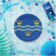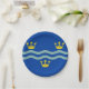 Placa de papel con diseño con bandera del condado histórico de Cambridgeshire, en Inglaterra, Gran Bretaña; bandera azul con tres coronas doradas y dos olas