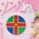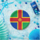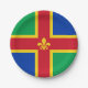 Placa de papel con diseño con bandera del condado histórico de Lincoln, Inglaterra, Gran Bretaña; bandera verde y azul con cruz roja y amarilla y un Fleur-de-Lis en el centro