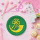Placa de papel con diseño con una bandera del histórico condado de Huntingdon, en Inglaterra, Gran Bretaña; bandera verde con un cuerno de caza con cinta dorada