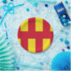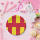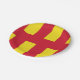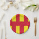 Placa de papel con diseño con una bandera del condado histórico de Northumberland, en Inglaterra, Gran Bretaña; bandera roja y amarilla basada en la bandera de St. Oswald.