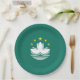 Este diseño presenta la bandera de Macao (también escrita como Macao y oficialmente conocida como la Región Administrativa Especial de Macao de la República Popular China), que es una ciudad en el delta del río de la Perla occidental cerca del Mar de China Meridional. Es una región administrativa especial de China y mantiene sistemas de gobierno y económicos separados de los de China continental. Macao fue una antigua colonia del Imperio Portugués, después de que Ming China alquilara el territorio como puesto comercial en 1557. La colonia permaneció bajo el dominio portugués hasta 1999, cuando fue transferida a China.