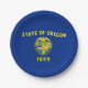 Este diseño presenta la bandera del estado de Oregón, que se encuentra en la región noroeste del Pacífico, en la costa oeste de los Estados Unidos. El estado está rodeado por Idaho, Washington, California y Nevada. La bandera de Oregón tiene un fondo azul marino con un sello de oro y texto; fue usada oficialmente por primera vez en febrero de 1925. La bandera contiene las palabras "Estado de Oregón" y el año 1859, que es cuando Oregón se convirtió en estado.