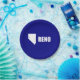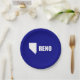 Placa de papel con bandera de la ciudad de Reno, Nevada; bandera azul con forma blanca de Nevada con estrella que simboliza la ubicación de Reno dentro del estado