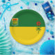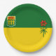 Este diseño presenta la bandera de la provincia canadiense de Saskatchewan. Presenta bandas horizontales de color verde y amarillo: se dice que el verde representa las zonas boscosas del norte de la provincia y que el amarillo representa los campos de grano de la región meridional. A la derecha se encuentra el ilustracion de un lirio de pradera, una flor nativa de América del Norte, y a la izquierda está el escudo de armas de Saskatchewan. Aproximadamente la mitad de la población de la provincia vive en las dos ciudades más grandes, Saskatoon y Regina, la capital de la provincia.
