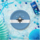 Placa de papel con un diseño con la bandera de Springfield, Misuri. Una bandera azul y blanca con una estrella en el centro